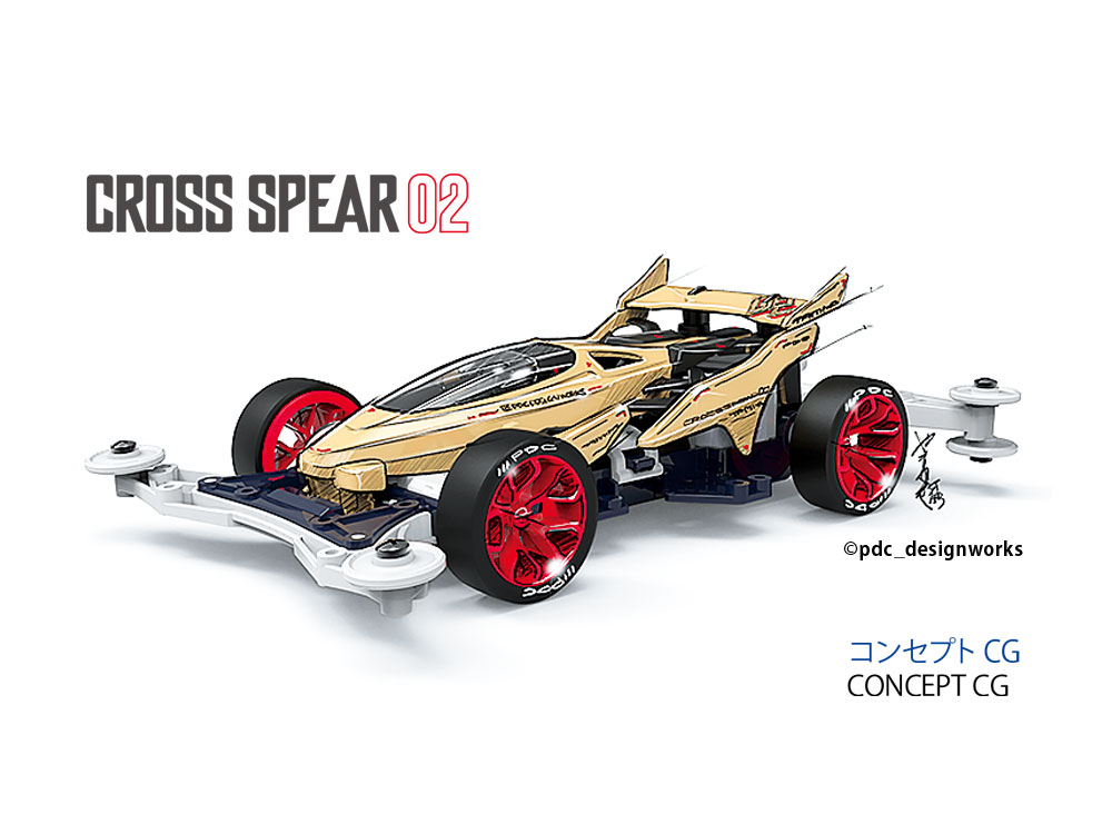 Kit perakitan ini menciptakan mobil Mini 4WD yang bergaya yang dikenal sebagai Cross Spear 02, yang sangat mirip dengan Cross Spear 01 kami sebelumnya. Desain yang ringkas dan ringan yang unik dengan tampilan yang halus dan rendah, kokpitnya bergeser ke depan, dan bagian teralis samping adalah gagasan desainer Jepang Takayuki Yamazaki. Ini didasarkan pada sasis VZ yang ringkas dan fokus pada balapan, dengan roda Y-spoke merah dan ban profil rendah berdiameter kecil yang sangat keras yang meminimalkan pantulan setelah lompatan.